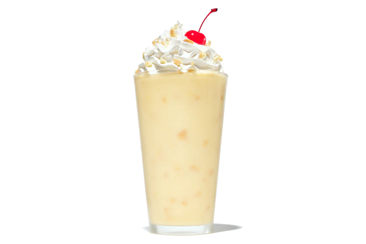A hand-spun vanilla milkshake topped with whipped cream, sprinkles, and a cherry. Only available in size Small.